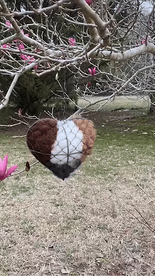 Place the heart out at the start of local nesting season, often early spring. Early placement gives birds access when they begin collecting nest materials.